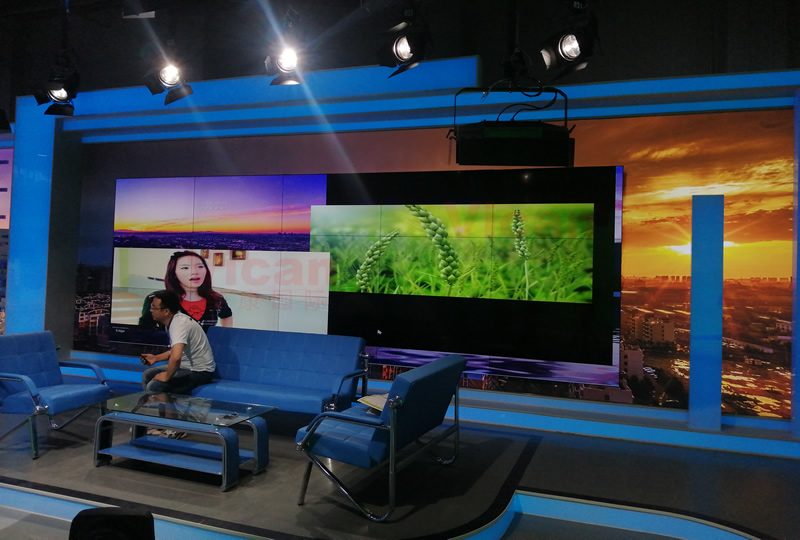近日,我公司為勝利油田廣播電視臺提供一套高清顯示屏,采用3行5列、55寸液晶拼接屏,拼縫僅0.88mm,見上圖所示,畫面顯示清晰、一體化顯示效果好。