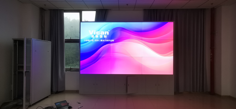 該項(xiàng)目中,維康國(guó)際為深圳市某企業(yè)提供了5套高清液晶大屏,采用0.88mm拼縫的高清晰液晶拼接屏,3x3拼接方式,高清畫質(zhì),超小拼縫,大屏幕畫面一體化顯示效果很好。