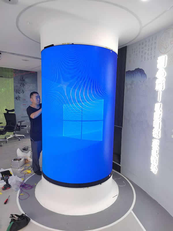 對于弧形LED顯示屏方案的設(shè)計(jì),一般是根據(jù)客戶的安裝場合來設(shè)計(jì)弧度,比如在原有的弧形墻面上或是圓柱形柱子上直接安裝,這時(shí)只需要根據(jù)這些安裝場合的弧度來定制安裝支架,然后把LED軟模組貼上去即可。當(dāng)然,還有一些使用場合是直接定制的,根據(jù)客戶所需的弧形而設(shè)計(jì)安裝支架,然后安裝LED軟模組。
