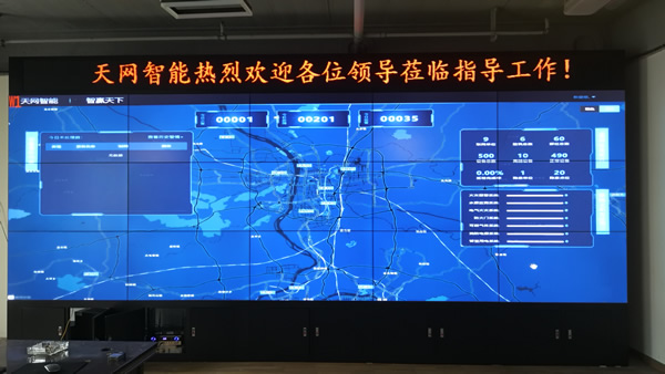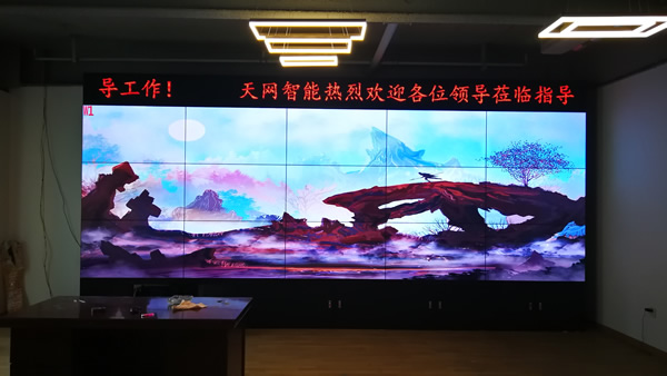 這套大屏安裝在湖南省天網(wǎng)智能科技有限公司的展廳,采用3x5拼接、55寸液晶拼接屏,雙邊拼縫為3.5mm,主要用來(lái)大數(shù)據(jù)顯示使用。