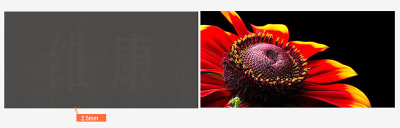 采用行業(yè)壓鑄鋁箱體,設計精度高,平整度高。箱體尺寸為640×480/(mm),模組尺寸寬320×高160mm,箱體重量7kg,亮度600~800cd/m2可調,像素點僅有2.5mm。
