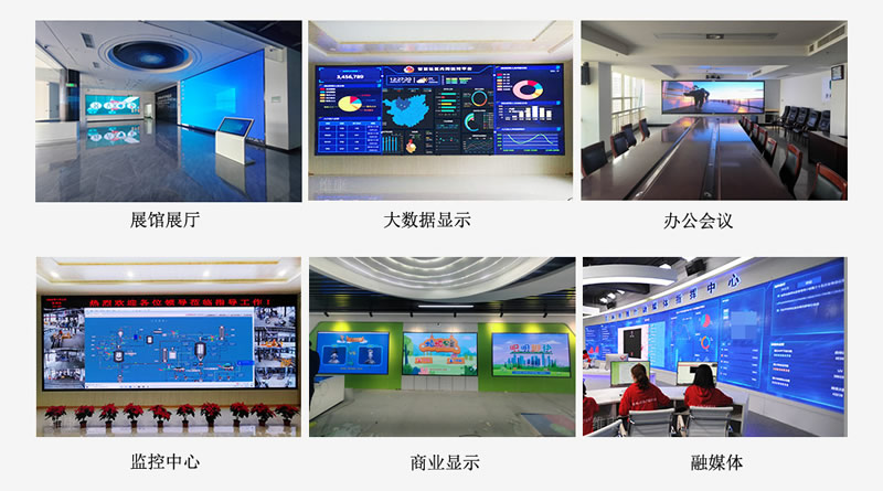 由于點間距小,所以大多應(yīng)用在室內(nèi)的高端大屏顯示領(lǐng)域,如展館展廳、大數(shù)據(jù)顯示、商業(yè)顯示、會議室、指揮中心、電視臺融媒體等。