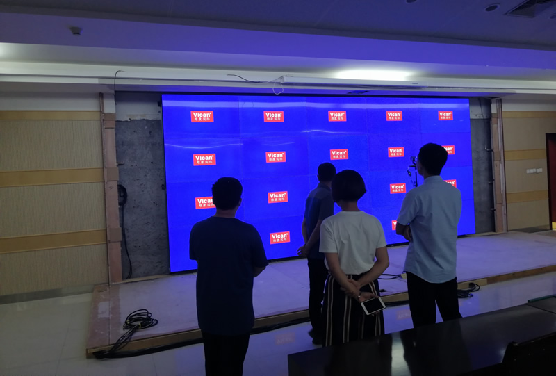 本案例中,維康國際為蓬萊電業(yè)大夏提供一套展廳LCD拼接屏,采用4x5拼接、55寸0.88mm液晶拼接屏,超窄邊設(shè)計(jì),畫面清晰亮麗,一體化顯示效果非常好,如上圖所示。