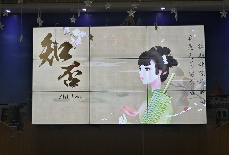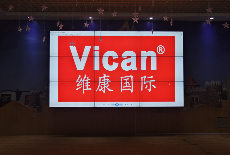 本案例中,維康國際為深圳寶安中心幼兒園提供一套高清顯示屏,采用3行3列、55寸液晶拼接屏,雙邊拼縫僅有3.5mm,有著很好的 大屏一體化顯示效果。