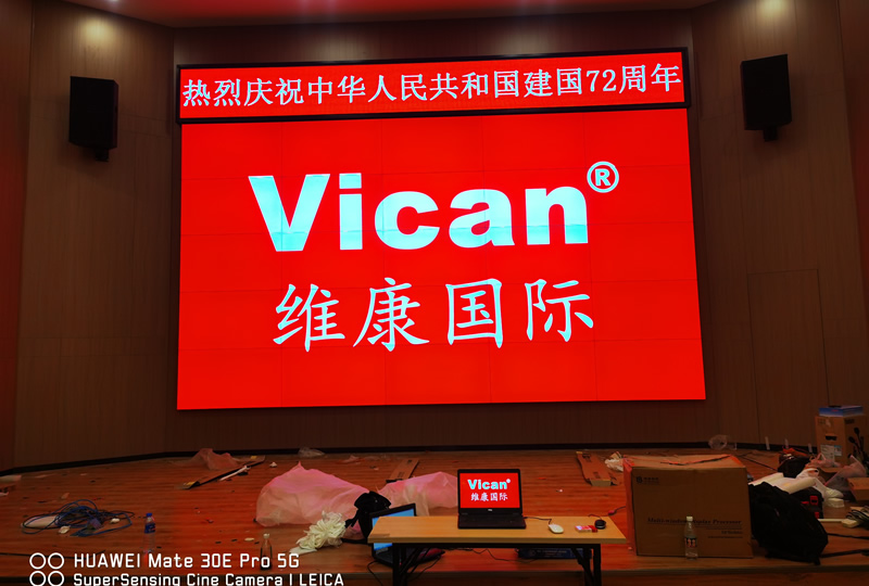 本案例中,維康國際為四川綿陽市某單位提供了一套會(huì)議顯示大屏,由5x5拼接、55寸0.88mm液晶拼接屏,帶LED條屏組成,大屏幕畫面顯示清晰亮麗,超窄邊縫隙,具有很好的一體化顯示效果。