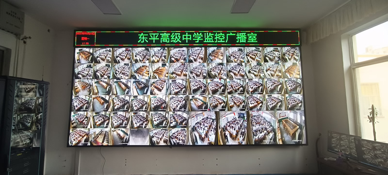 本案例中,維康國際為東平市高級中學的監(jiān)控廣播室提供一套顯示大屏,采用3行4列、55寸液晶拼接屏,主要用來 顯示監(jiān)控畫面,如上圖所示。