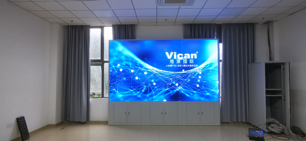 該項(xiàng)目中,維康國(guó)際為深圳市某企業(yè)提供了5套高清液晶大屏,采用0.88mm拼縫的高清晰液晶拼接屏,3x3拼接方式,高清畫質(zhì),超小拼縫,大屏幕畫面一體化顯示效果很好。