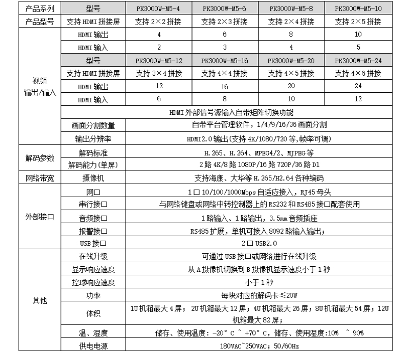 PK3000W-M5數(shù)字矩陣采用最新的安防專用編解碼芯片,專為H.265標(biāo)準(zhǔn)及4K超高清編解碼而設(shè)計(jì),產(chǎn)品采用嵌入式LINUX架構(gòu),保障系統(tǒng)的穩(wěn)定運(yùn)行,采用模塊化設(shè)計(jì),可以在大型、超大型數(shù)字安防監(jiān)控系統(tǒng)中實(shí)現(xiàn)解碼、編碼、拼接、分割、畫中畫、漫游等功能,為工程項(xiàng)目最大程序解決大數(shù)據(jù)數(shù)字化監(jiān)控系統(tǒng)提供解碼上墻及多信號(hào)輸入編碼等提供一站式解決方案;設(shè)備采用全鋁標(biāo)準(zhǔn)機(jī)箱,結(jié)構(gòu)上大氣美觀可靠,散熱性結(jié)構(gòu)化好。