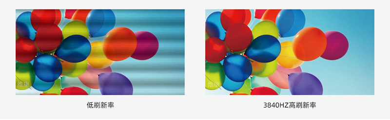 維康國際的P1.2小間距l(xiāng)ed顯示屏的刷新率高達(dá)2880~3840Hz,在相機拍攝時完全沒有橫線干擾,沒有水波紋現(xiàn)象。